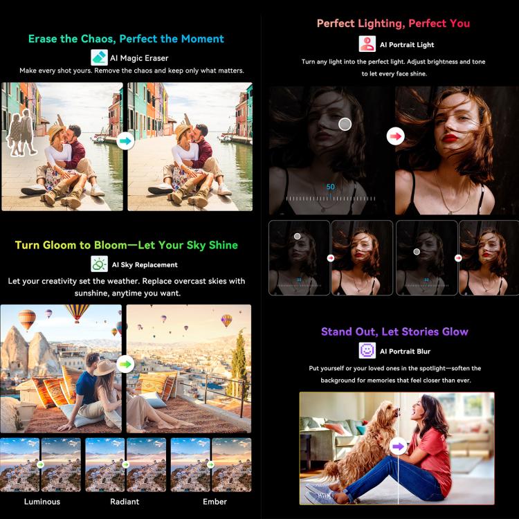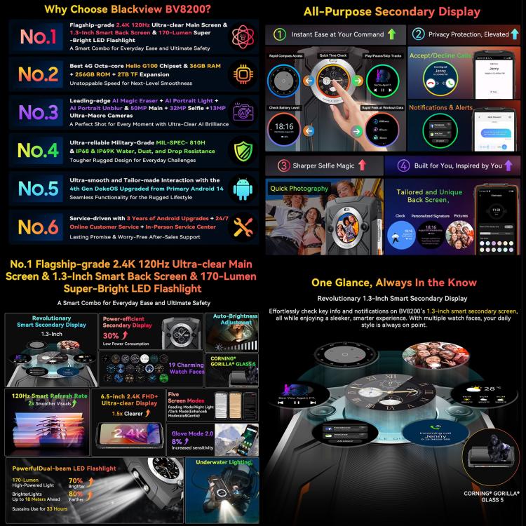 2. Back Display:1.3-inch,360*360 Resolution, Corning Gorillas Glass 5, 60Hz Refresh Rate