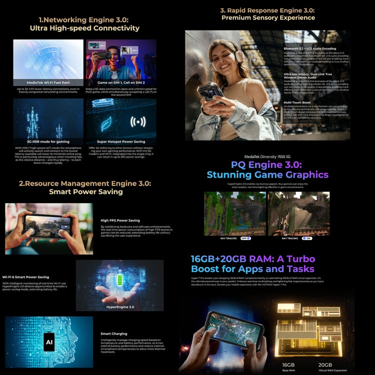1. CPU: MediaTek Dimensity 7050, 6nm, 2x A78 2.6GHz +6x A55 2.0GHz