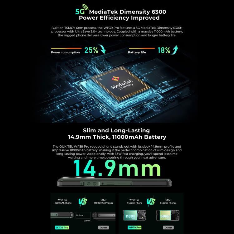 1. CPU: MediaTek Dimensity 6300, 6nm, octa-core, 2 x Arm Cortex-A76 2.2GHz + 6 x Arm Cortex-A55 2.0GHz