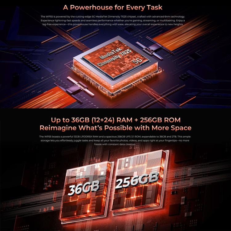 3. Storage and memory: 12GB RAM (12GB + 24GB Virtual Extended ram) + 256GB ROM; Storage Card: Up to 2TB (not included)