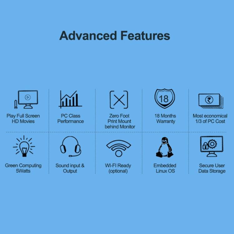 12. Ports: HDMI, VGA, USB2.0x3, RJ45, ON/OFF, SPK, Mic, DC-in