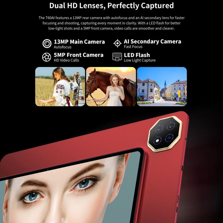 6. With up to 16GB RAM (6GB LPDDR5 + 10GB virtual) and 128GB UFS 3.1 storage, the T60AI ensures fast access to data and ample space for apps and media, supporting efficient multitasking.