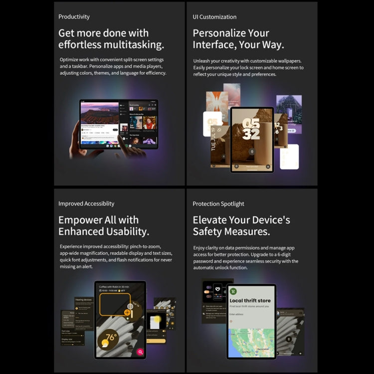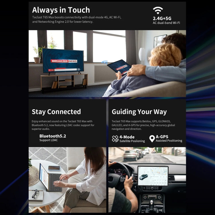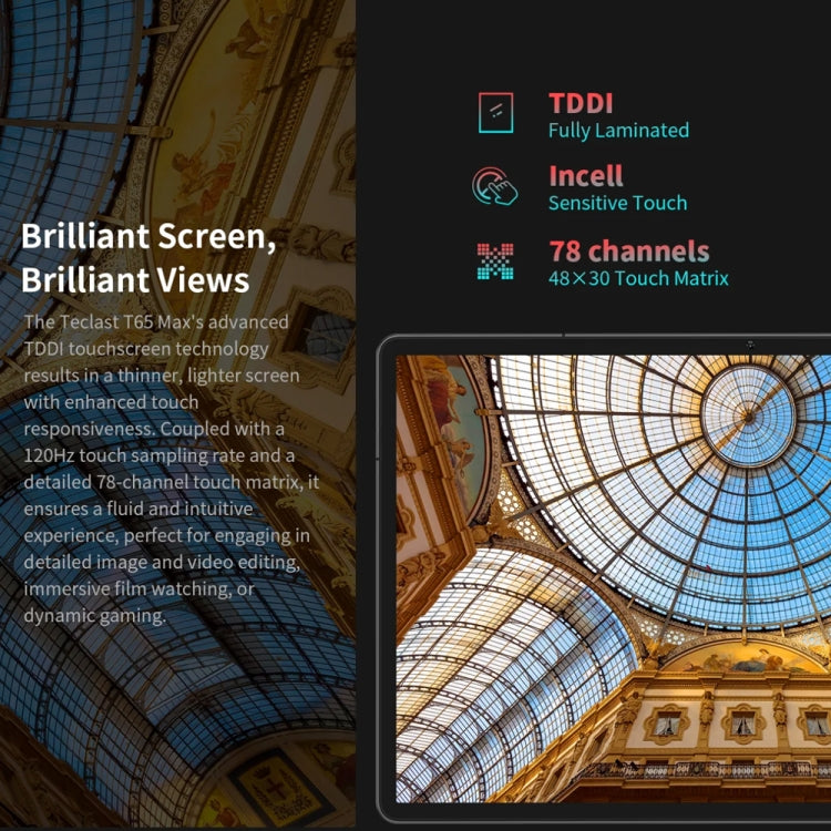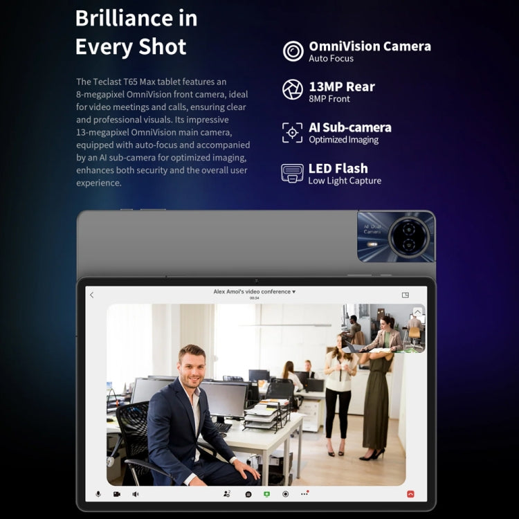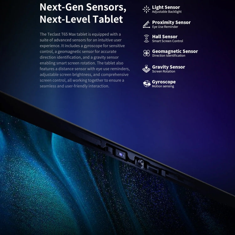 6. Sensory Intelligence: The T65Max is at the forefront of sensory innovation, featuring an array of intelligent sensors including ambient light, hall, and proximity detectors, complemented by an intricately calibrated gyroscope. This harmonious integration of technology offers a tailored, responsive user interaction, redefining the boundaries of smart tablet capabilities.